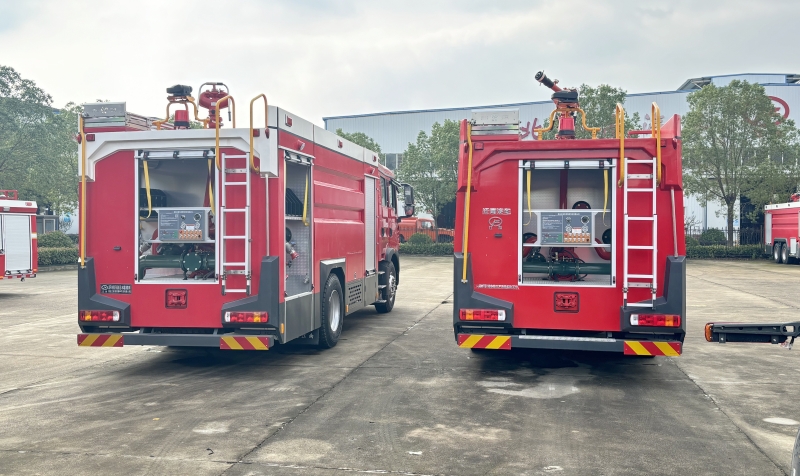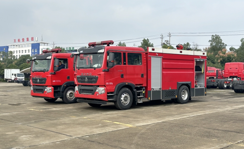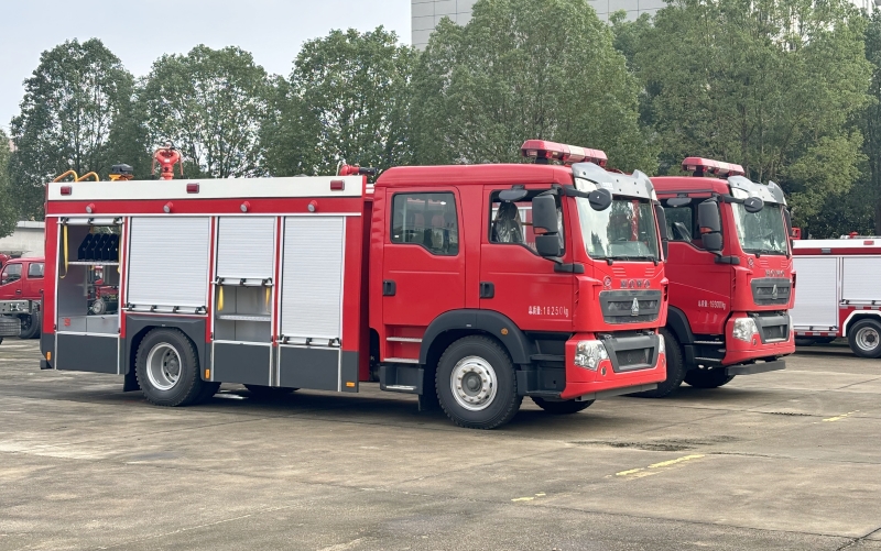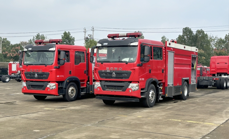 兩臺重汽6-8噸水罐泡沫消防車發往山西臨汾輪胎企業
