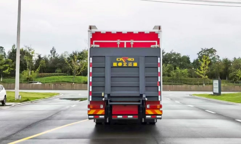 車輛采用標準化拉臂機構(gòu),支持多類型器材箱體快速裝卸。模塊箱內(nèi)部以編織帶和絞繩器固定裝備,確保運輸穩(wěn)固性;箱體容積達8立方米,可容納22類常規(guī)救援設(shè)備,如消防水帶、破拆工具及生命探測儀,實現(xiàn)“一車多能”的靈活部署。