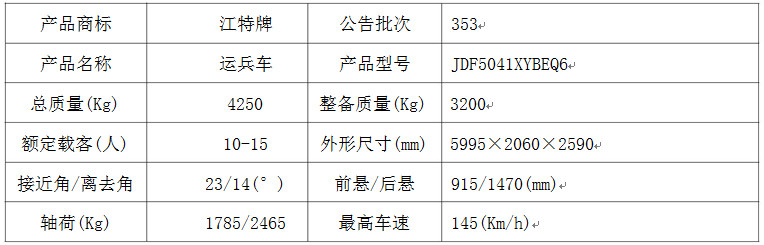 整車型號:江特牌 JDF5041XYBEQ6 型運兵車